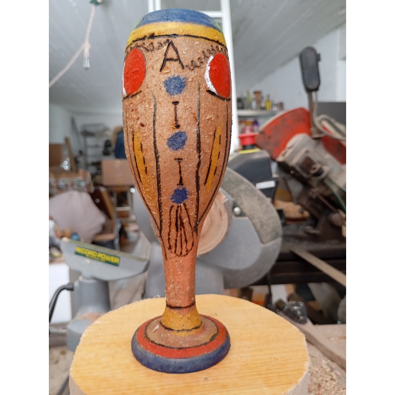 Eucalyptus cup, dimensions: Height 21 cm, Width 8 cm. Surface rough with colors.